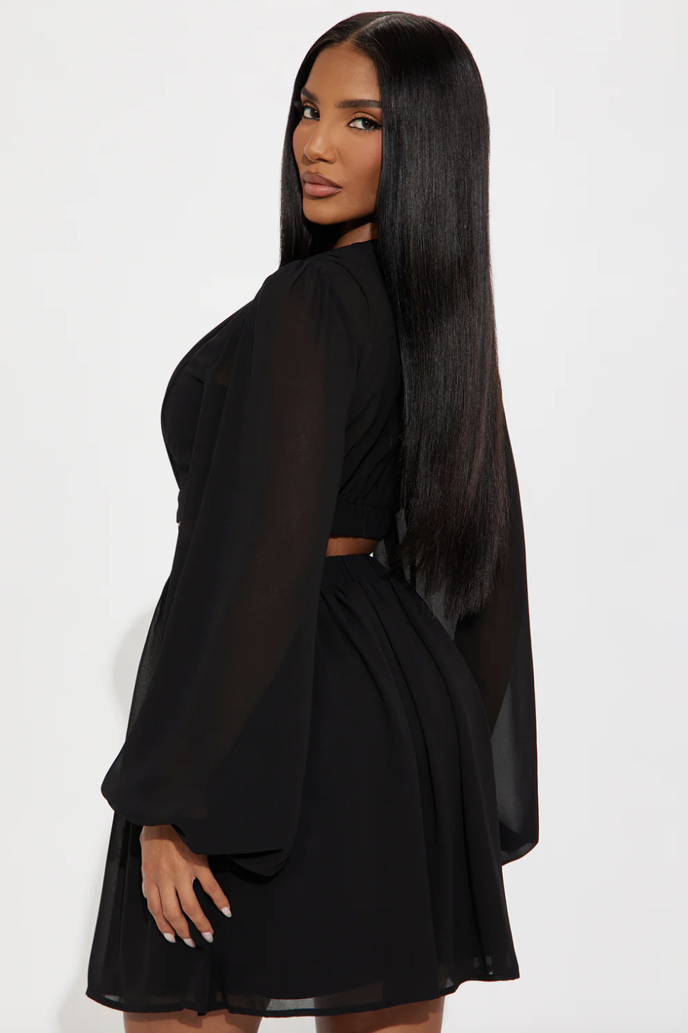 Natalia Chiffon Mini Dress - Black