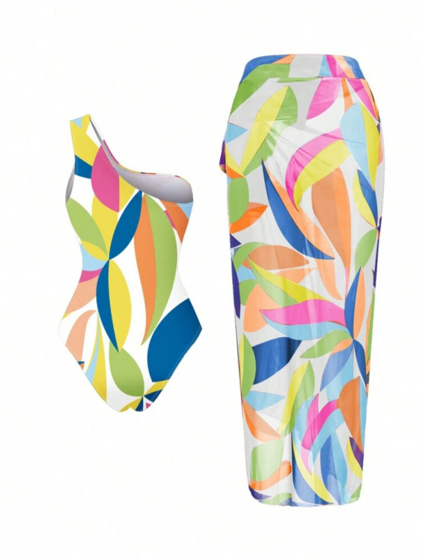 3pack Marble Pattern Bikini Swimsuit & Cover Up