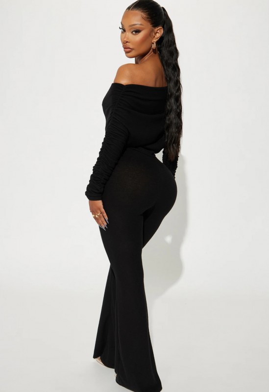 Yasmine Off Shoulder Sweater Jumpsuit - Black