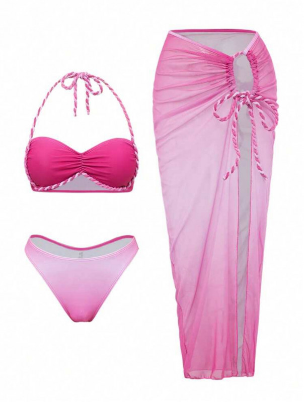 Pink Beach Slit Hem Skirt 3 PiecesSwimsuit