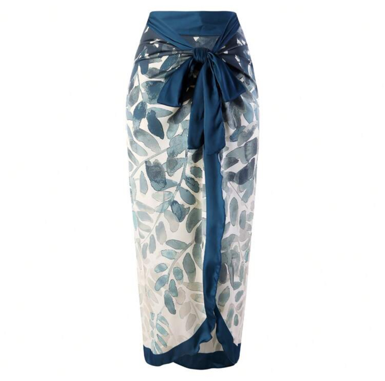 Blue Color Neck Bikini Mesh Skirt 3pcs Swimwear
