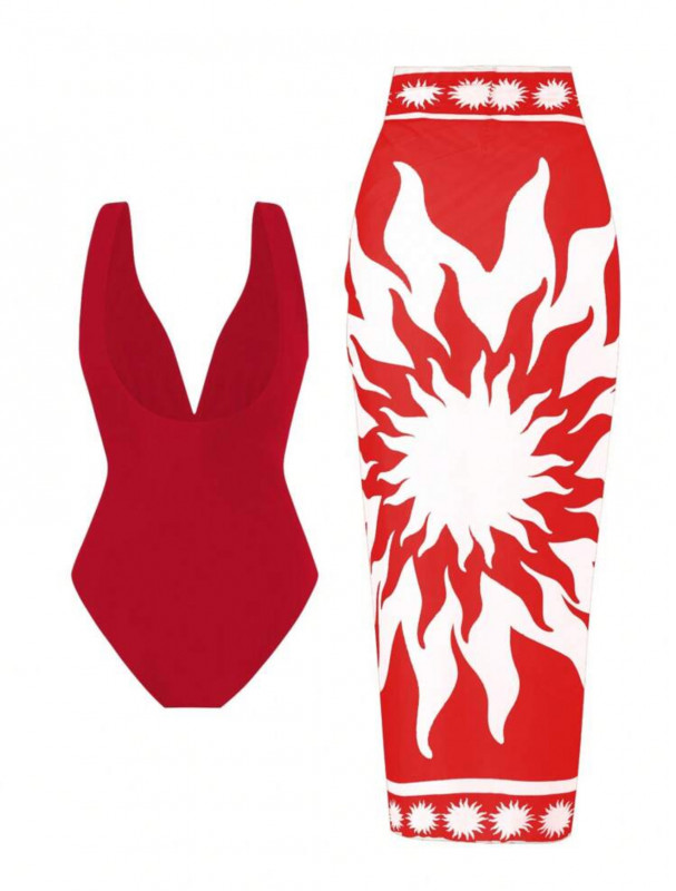 3pack Marble Pattern Bikini Swimsuit & Cover Up